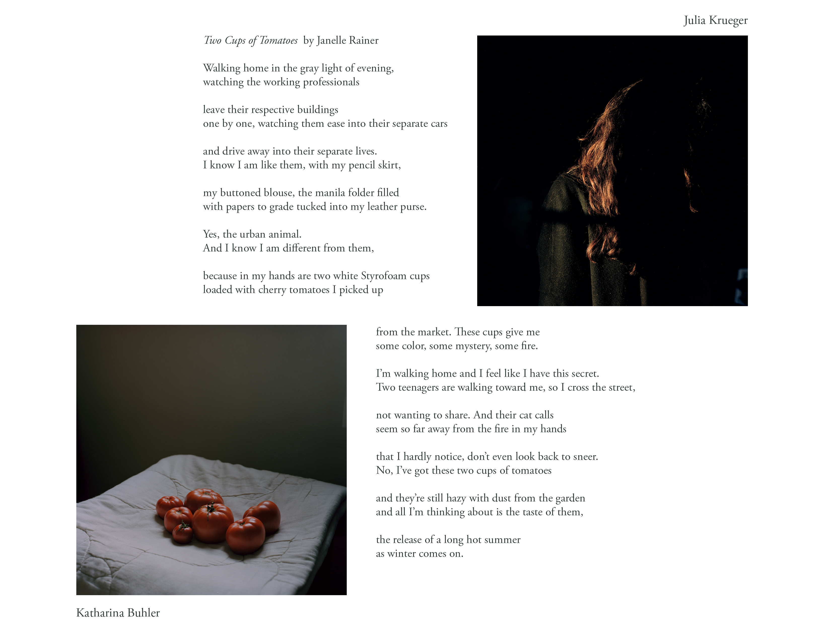 Photographs: Pascal Amoyel, Sophie Barbasch, Svetlana Biryukova, Katharina Buhler, Aaron Canipe, Brittany Carmichael, Anna Clem, Alice Connew, Bryon Darby, Annie Donovan, Casey Dorobek, Megan Douglas, Alan Eglinton, Ross Faircloth, Melissa Fennell, Caroline Heitkamp, Thomas Locke Hobbs, Kim Hoeckele, Jaime Johnson, Julia Krueger, Alex Kwok, Matthieu Litt, Colleen Mann, Sarah Moore, Jessica Naples, Sarah Pfohl, Maureen Price, Ian Sherlock, Jordan Swartz, Ashley Whitt, Alex Christopher Williams and Dominca Paige.